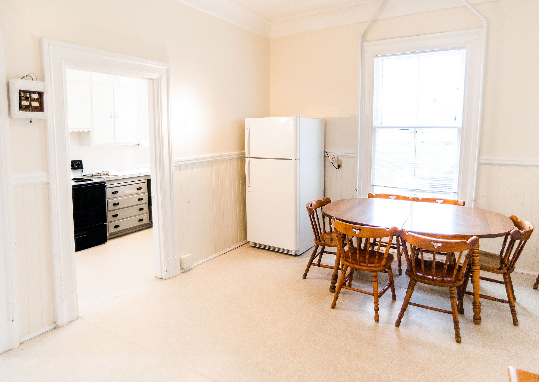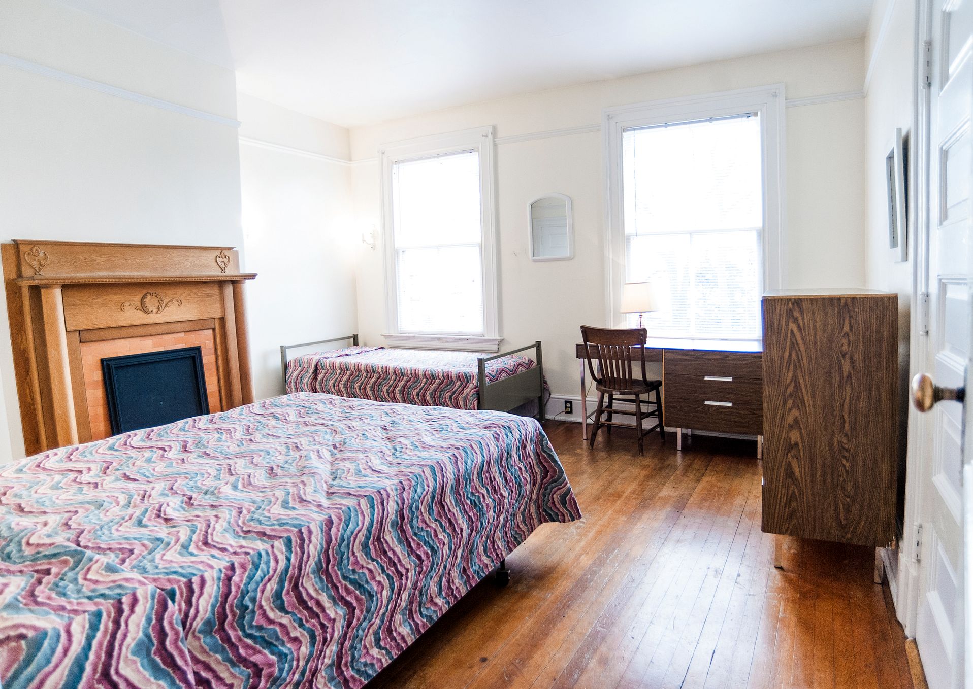Alumni House West has 6 bedrooms and can sleep a total of 21. The house has two bathrooms located on the second floor. Each bathroom includes a clawfoot tub with hand held sprayer or with a stand up shower.