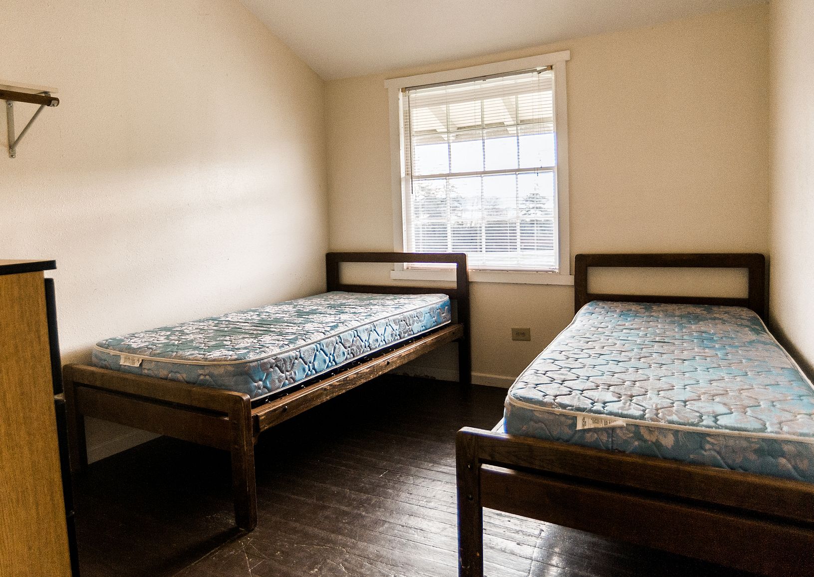 The upper level features semiprivate bedrooms on either side of a central hallway with a small meeting space at one end and centrally located restrooms. Linens not provided.