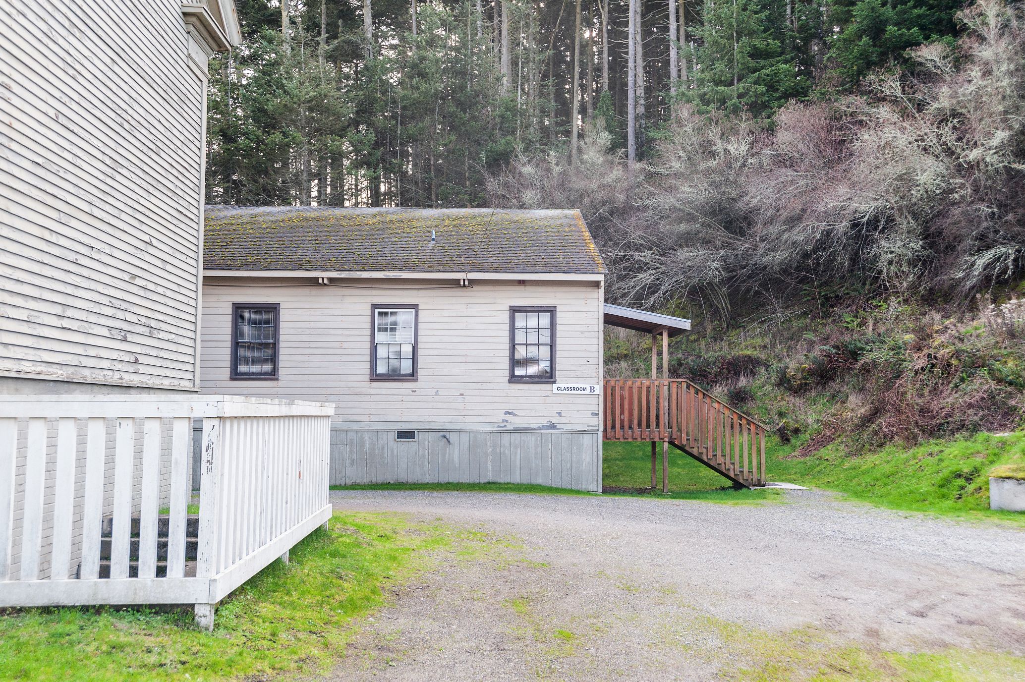 Classroom B was built in the early 1940s and is a meeting space with multiple classrooms and two restrooms. It is located behind the gymnasium near the south entrance to Camp Casey.