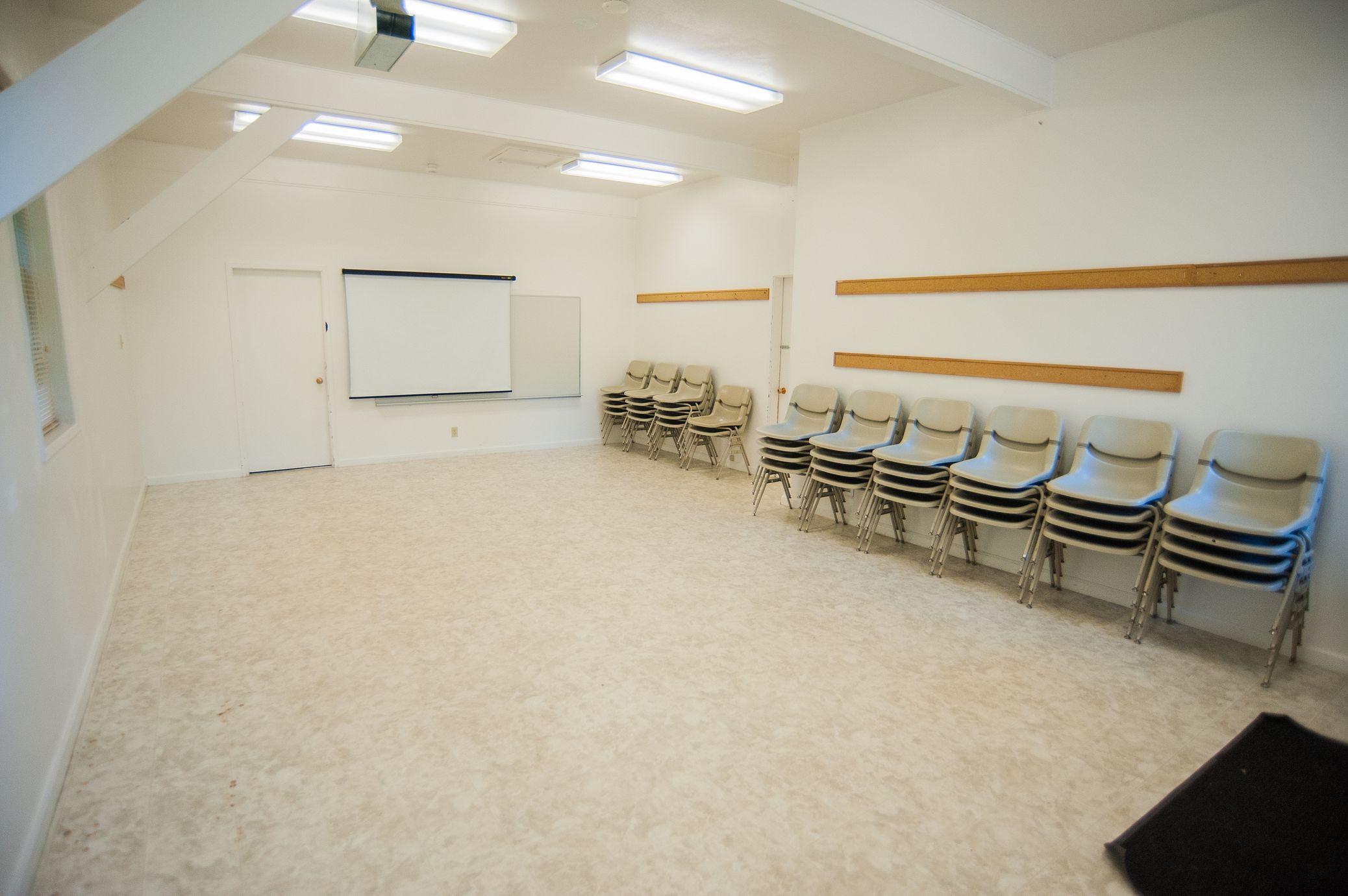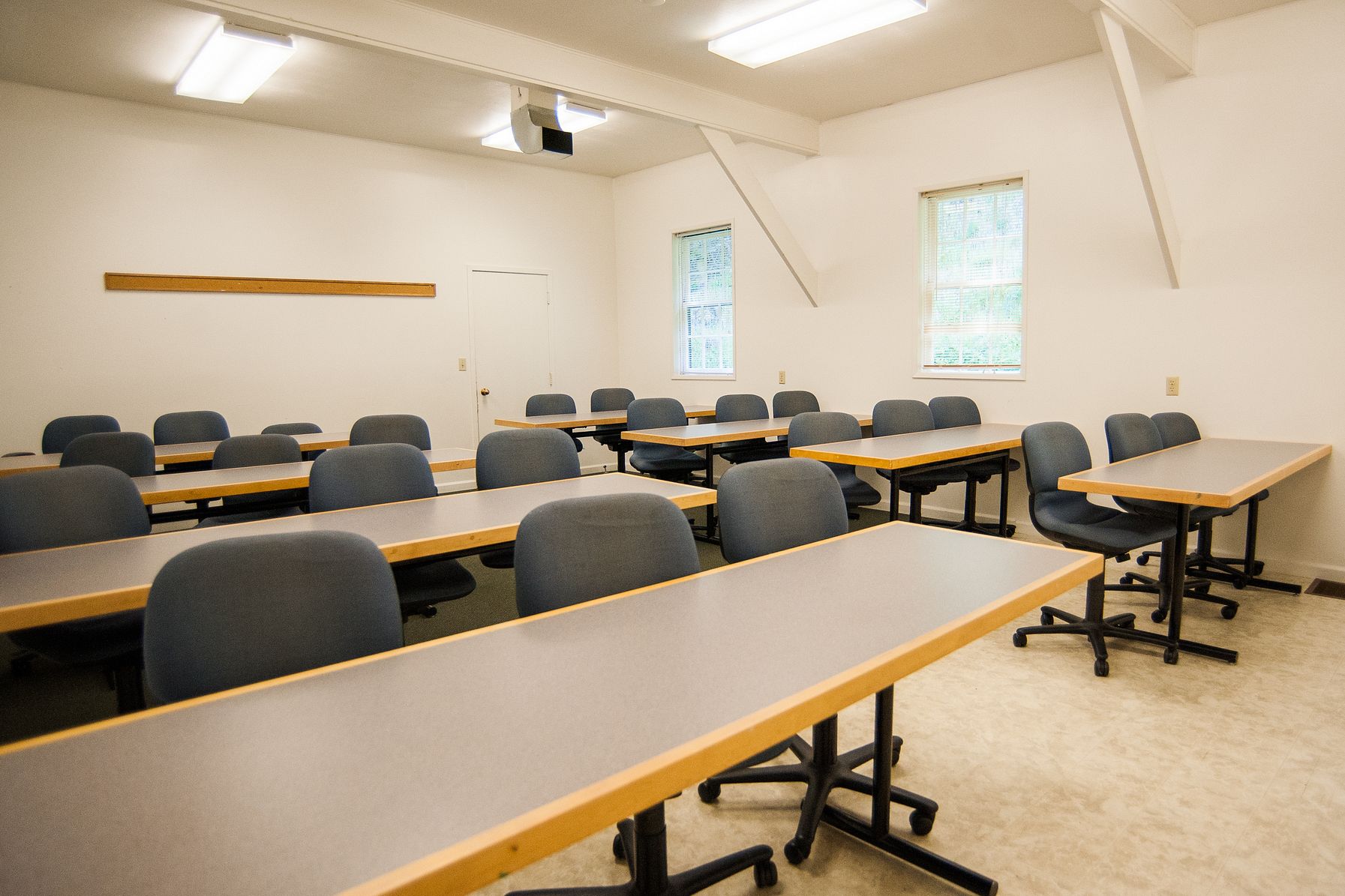 - Chairs are included in each classroom and one room is set up with tables and chairs.