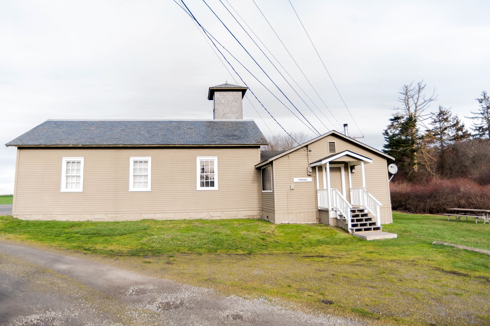 The Firehall is located on the Crockett Lake side of Casey’s South Campus. In the early 1900s, the Firehall served as the fire station for the Fort Casey military camp. In the 1970s, the back portion of the building was converted to a three-bedroom, one-bath home accommodating 6–11.