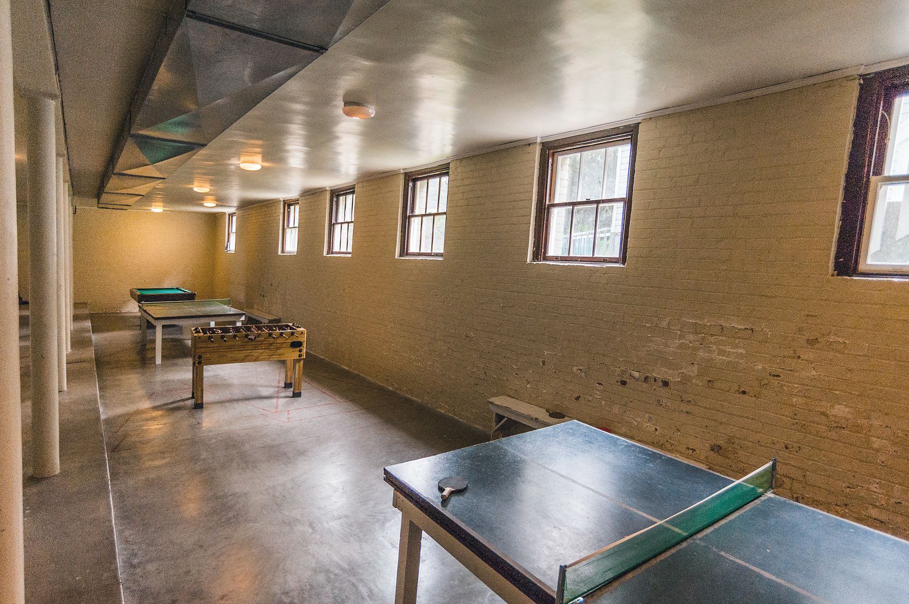 The basement consists of a Game Room which includes billiards, foosball, and ping pong tables.