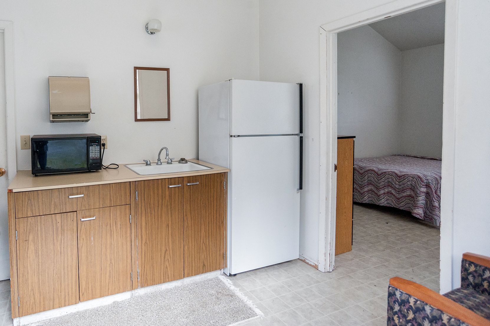 This one bedroom/one bathroom apartment, accommodating three, offers a kitchenette with a refrigerator and microwave oven. The bedroom has a queen size bed, a twin bed and a dresser. The bathroom has a roll-in shower. Linens not provided.